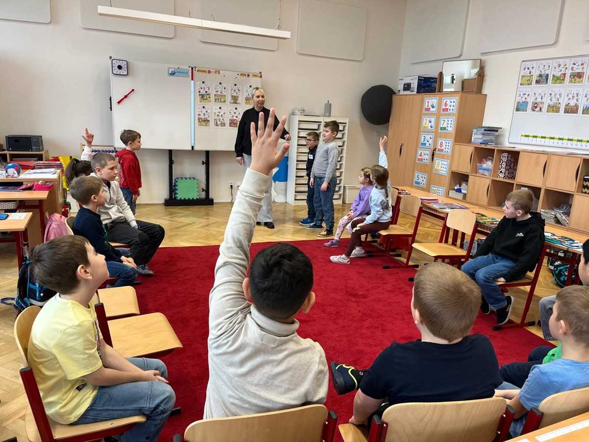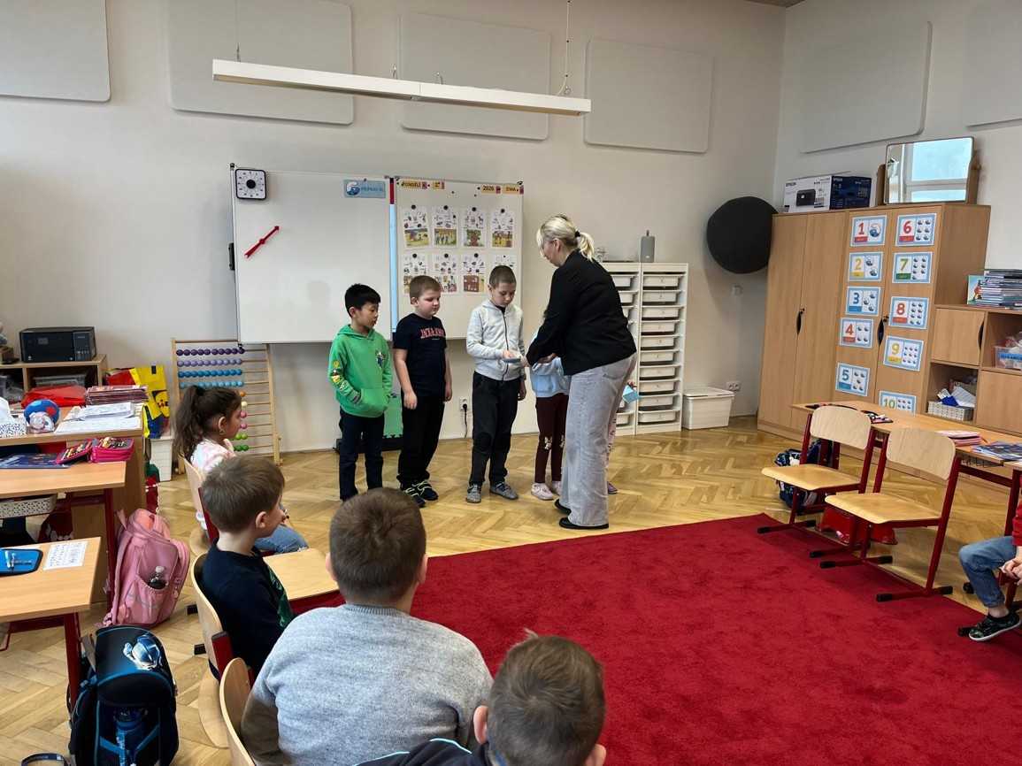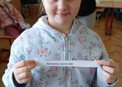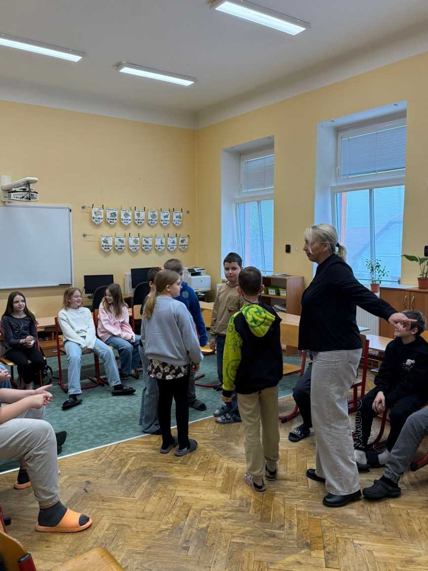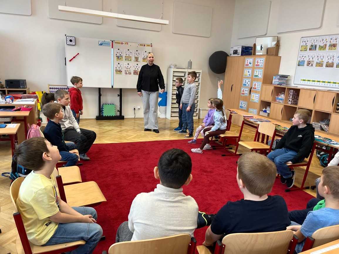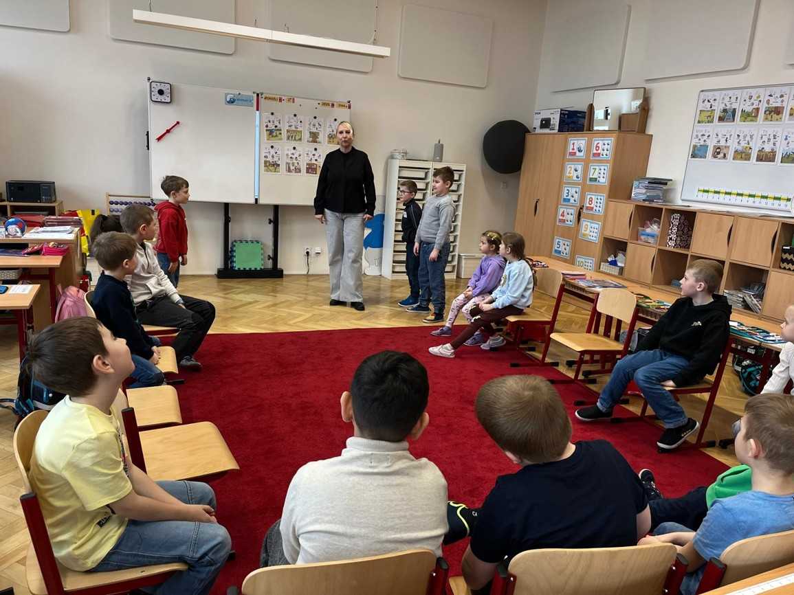Hned po jarních prázdninách si děti mohly procvičit své znalosti etikety a pravidel chování, jak ve škole, tak i v běžném životě. Po menších skupinách absolvovaly lekci, při které jim paní lektorka nabídla různé společenské situace k řešení. Děti si zahrály scénky, při kterých si zopakovaly pravidla slušného chování, např. zdravení, kdy má přednost žena, kdy starší nebo společensky významnější osoba, jak sedět v restauraci nebo, kdo vchází první do dveří. Pro někoho to byly úplně nové informace, jiní si tato pravidla osvěžili. Uvidíme, jak se jim bude dařit je dodržovat i v praxi.
