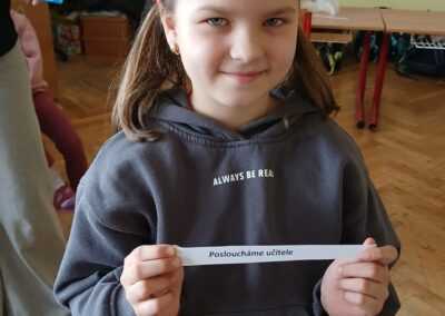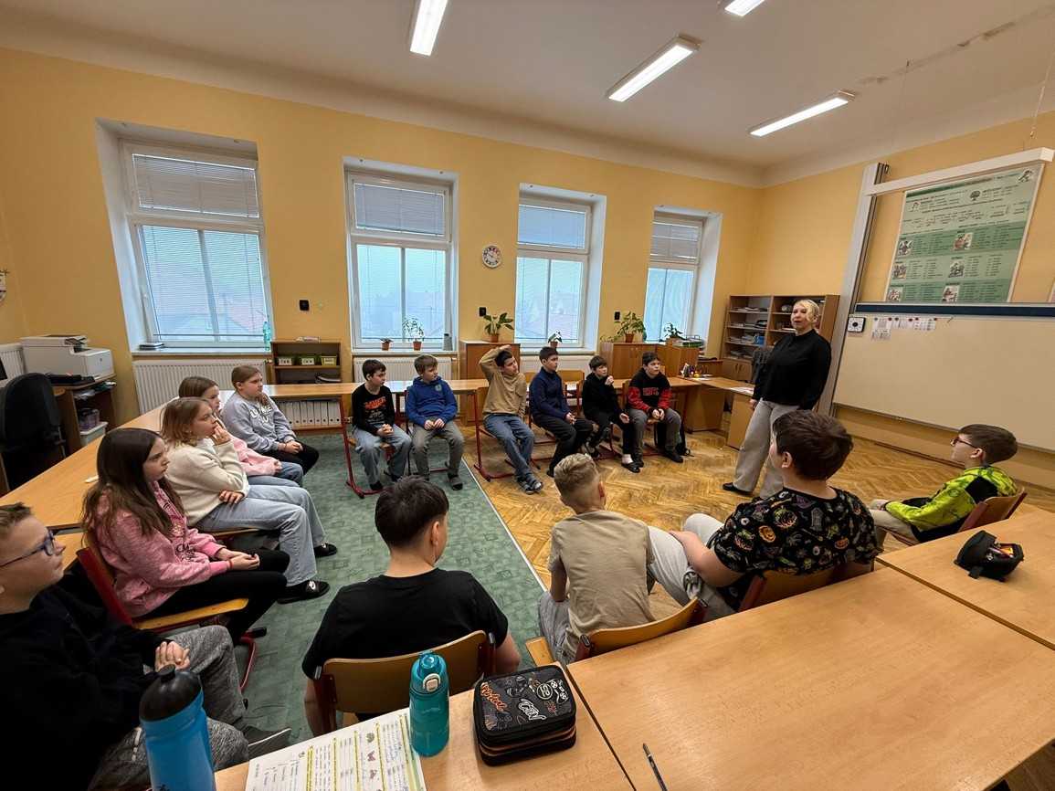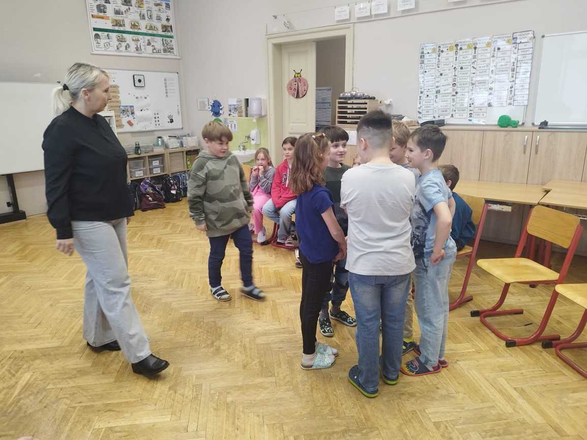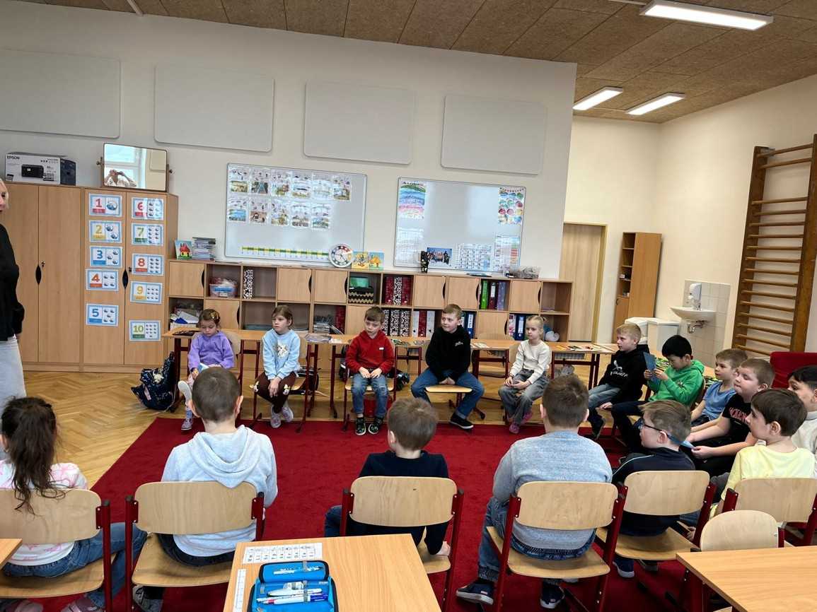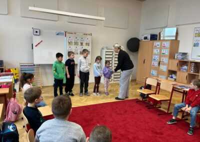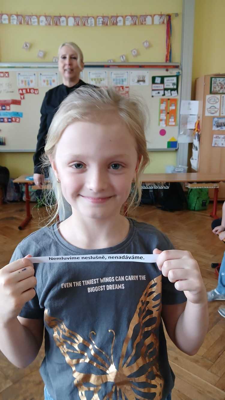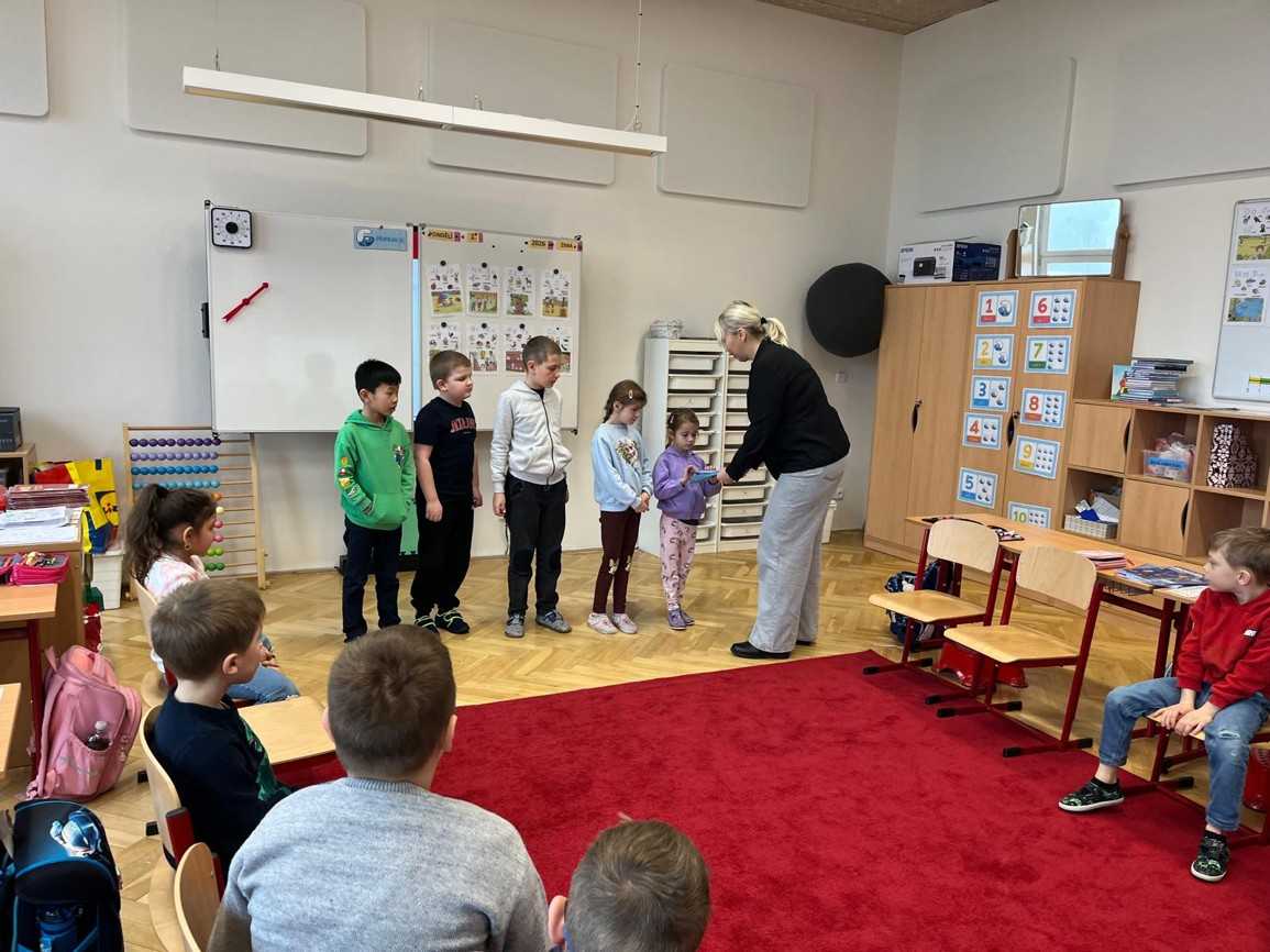 Hned po jarních prázdninách si děti mohly procvičit své znalosti etikety a pravidel chování, jak ve škole, tak i v běžném životě. Po menších skupinách absolvovaly lekci, při které jim paní lektorka nabídla různé společenské situace k řešení. Děti si zahrály scénky, při kterých si zopakovaly pravidla slušného chování, např. zdravení, kdy má přednost žena, kdy starší nebo společensky významnější osoba, jak sedět v restauraci nebo, kdo vchází první do dveří. Pro někoho to byly úplně nové informace, jiní si tato pravidla osvěžili. Uvidíme, jak se jim bude dařit je dodržovat i v praxi.