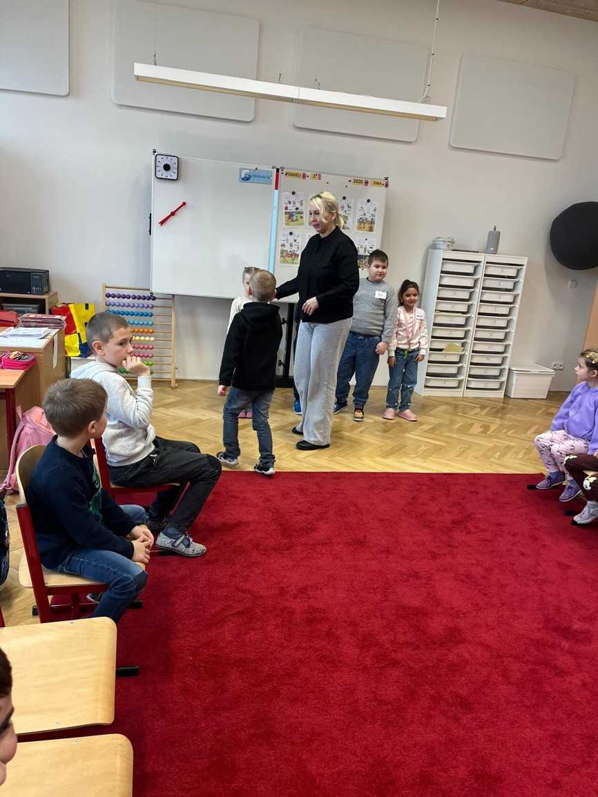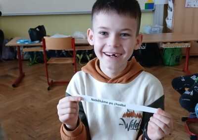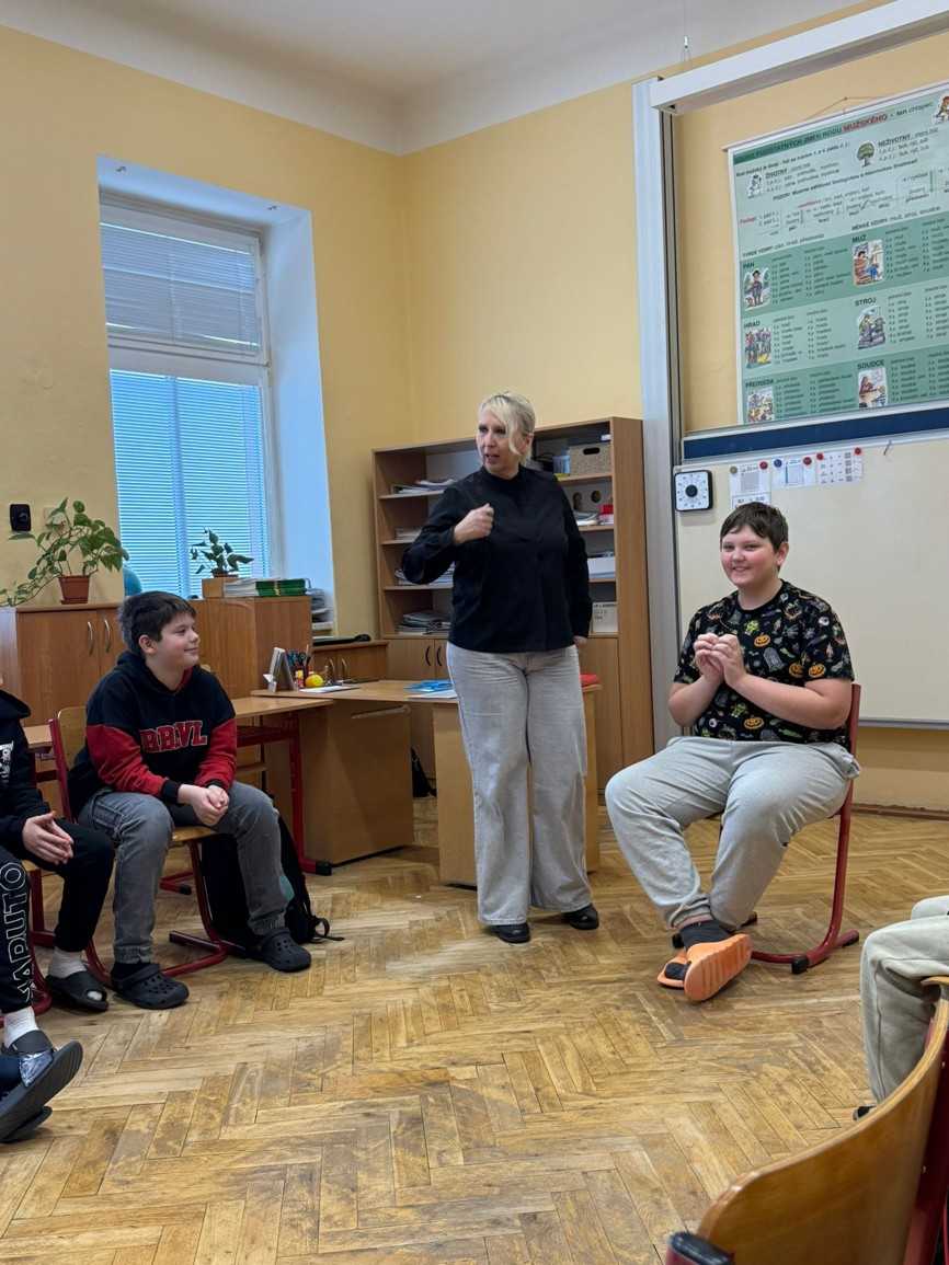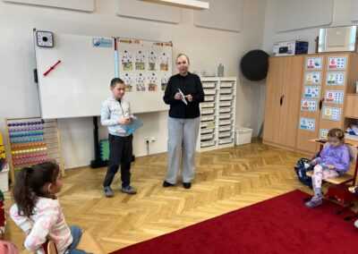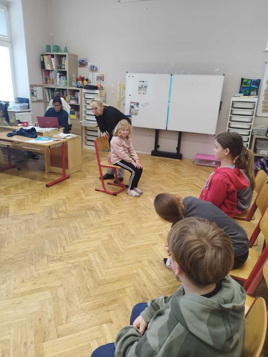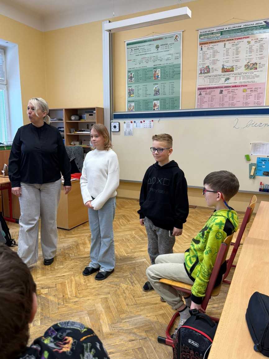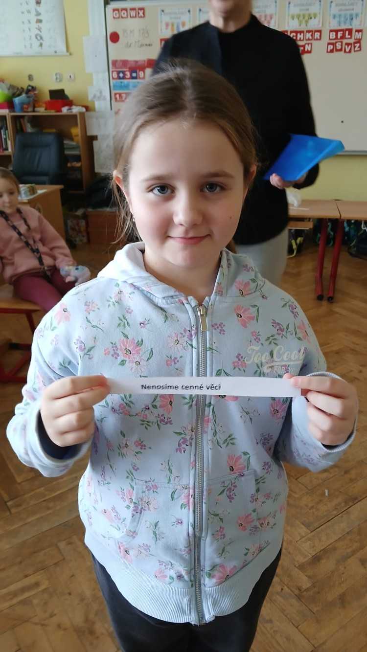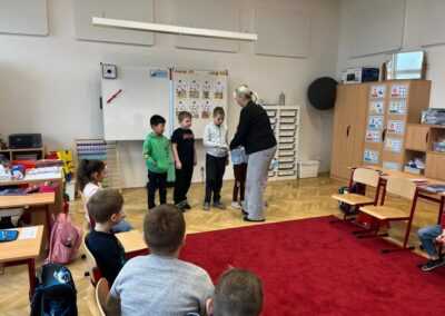 Hned po jarních prázdninách si děti mohly procvičit své znalosti etikety a pravidel chování, jak ve škole, tak i v běžném životě. Po menších skupinách absolvovaly lekci, při které jim paní lektorka nabídla různé společenské situace k řešení. Děti si zahrály scénky, při kterých si zopakovaly pravidla slušného chování, např. zdravení, kdy má přednost žena, kdy starší nebo společensky významnější osoba, jak sedět v restauraci nebo, kdo vchází první do dveří. Pro někoho to byly úplně nové informace, jiní si tato pravidla osvěžili. Uvidíme, jak se jim bude dařit je dodržovat i v praxi.