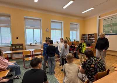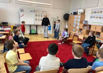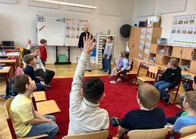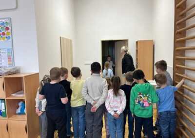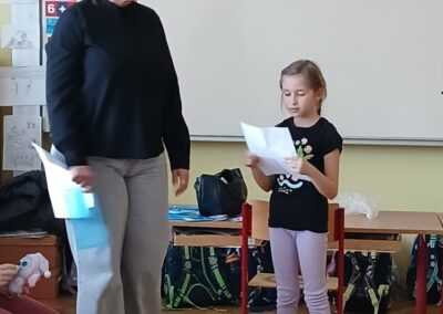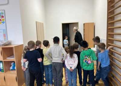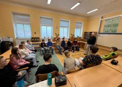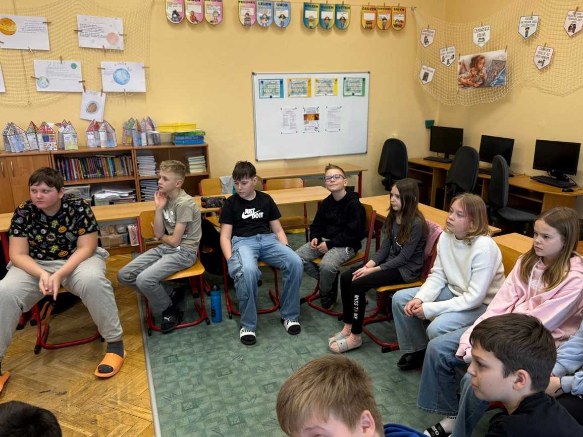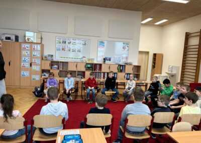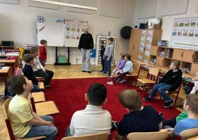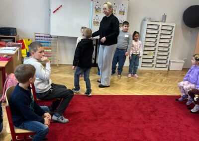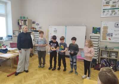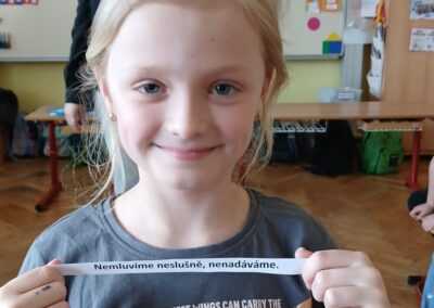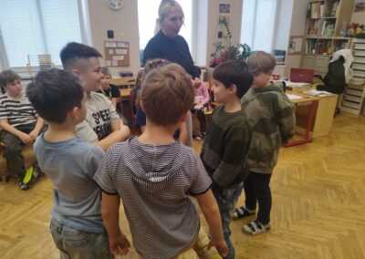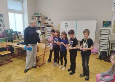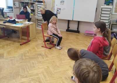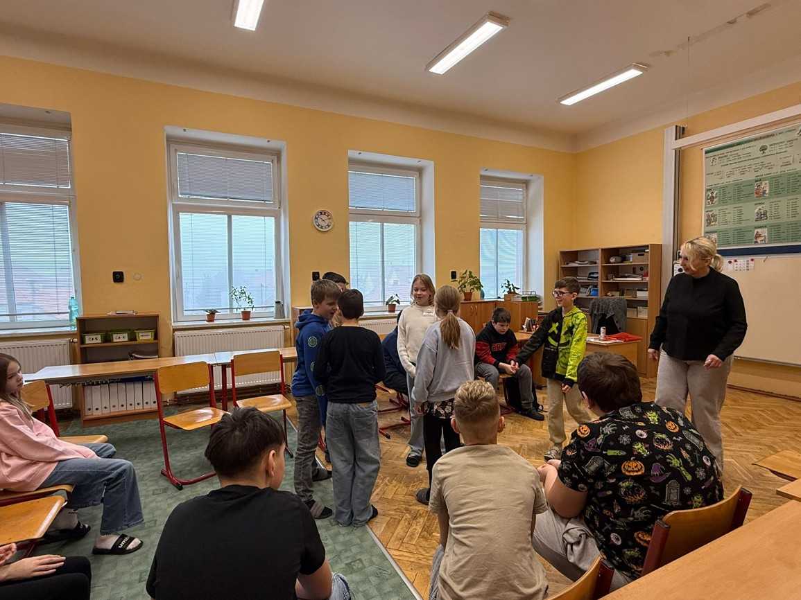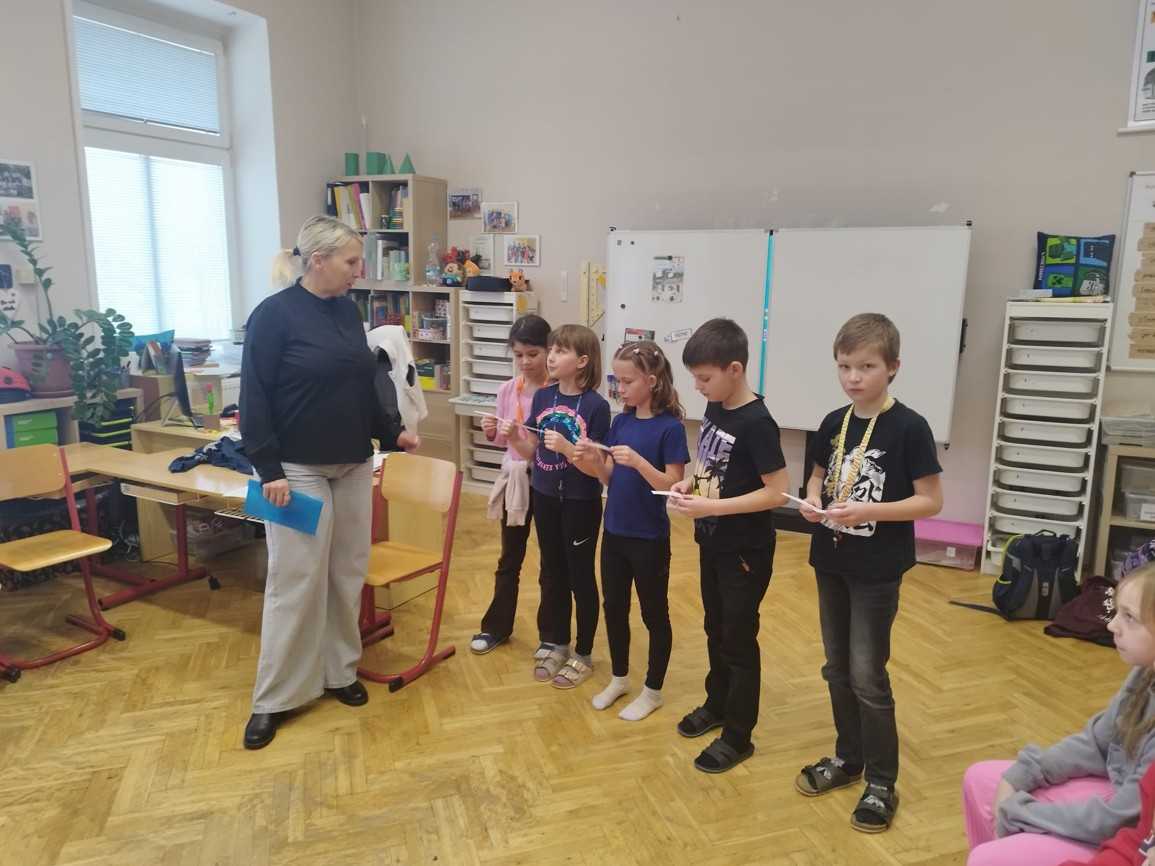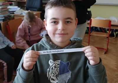 Hned po jarních prázdninách si děti mohly procvičit své znalosti etikety a pravidel chování, jak ve škole, tak i v běžném životě. Po menších skupinách absolvovaly lekci, při které jim paní lektorka nabídla různé společenské situace k řešení. Děti si zahrály scénky, při kterých si zopakovaly pravidla slušného chování, např. zdravení, kdy má přednost žena, kdy starší nebo společensky významnější osoba, jak sedět v restauraci nebo, kdo vchází první do dveří. Pro někoho to byly úplně nové informace, jiní si tato pravidla osvěžili. Uvidíme, jak se jim bude dařit je dodržovat i v praxi.