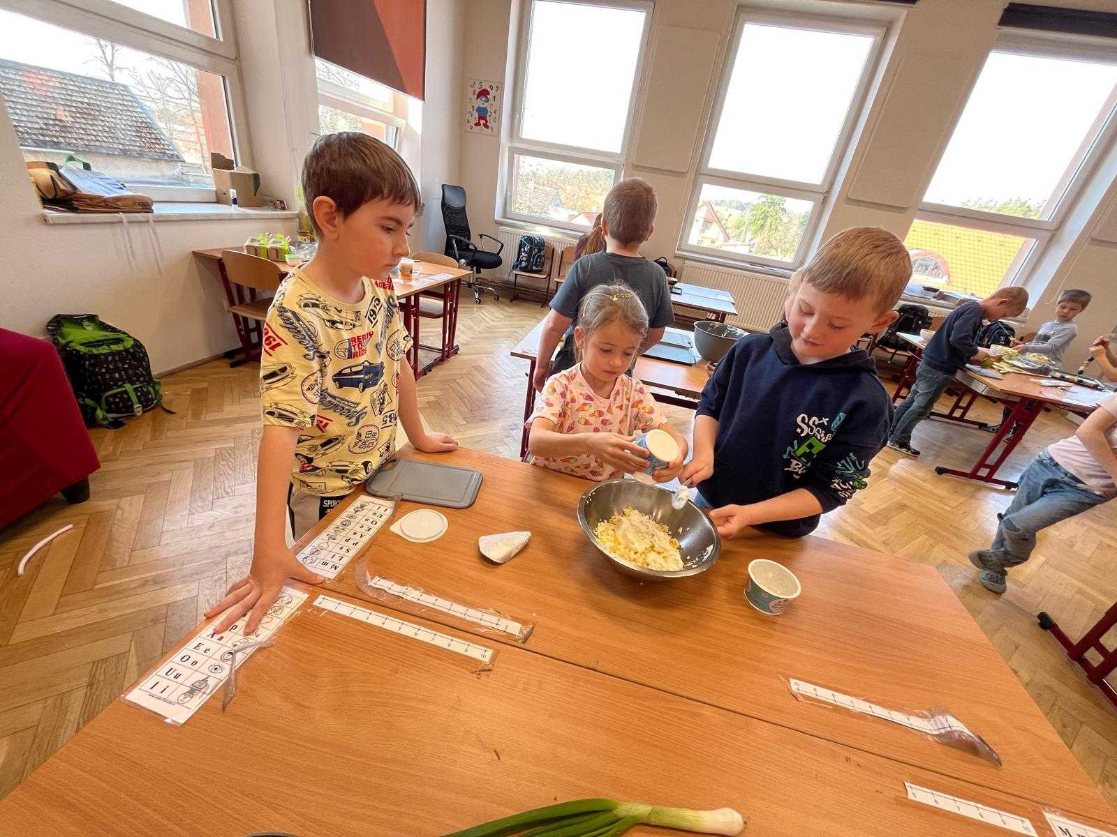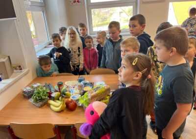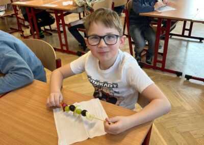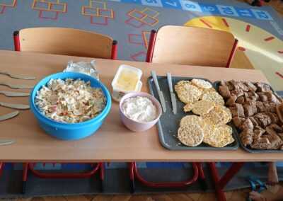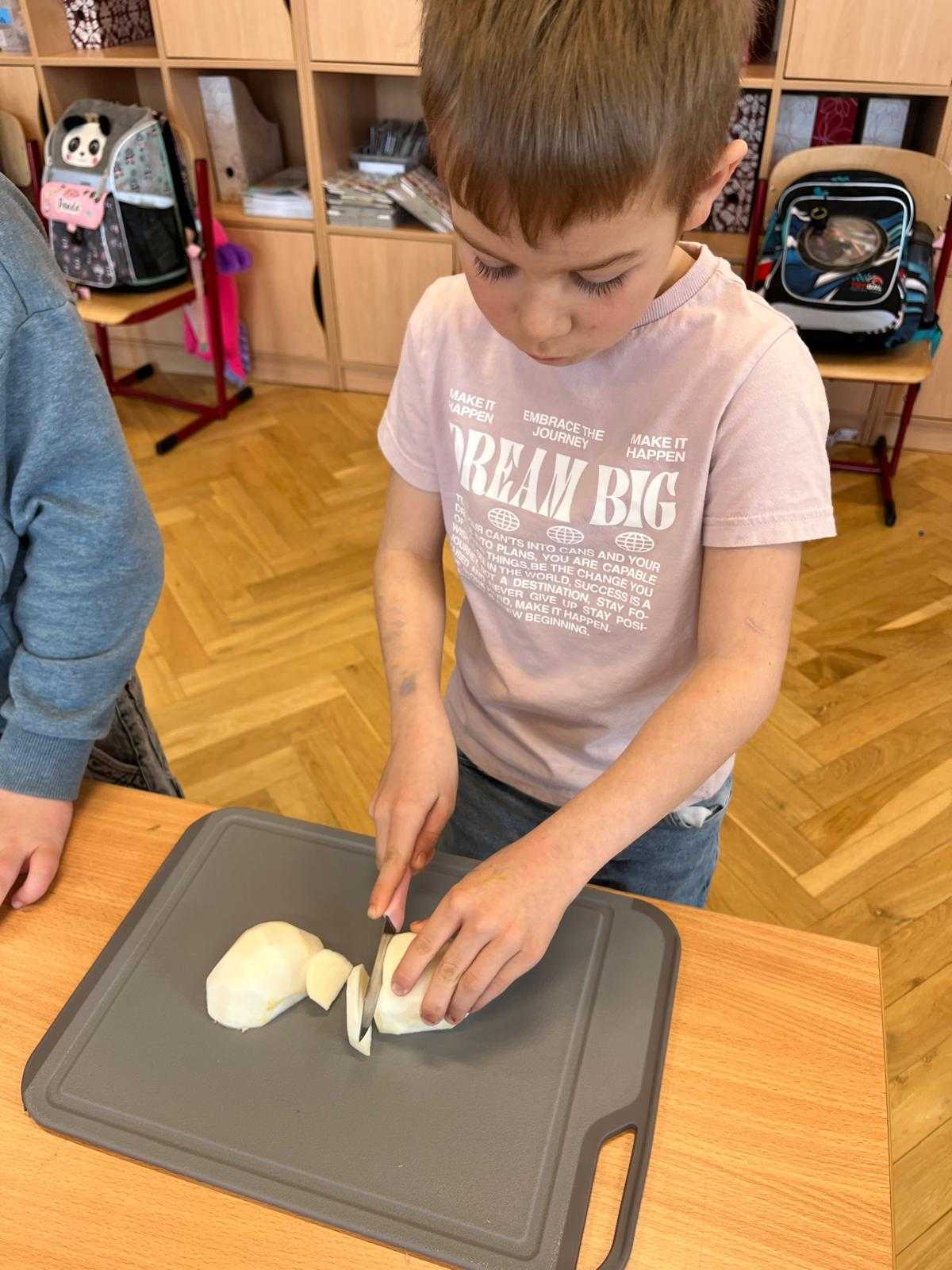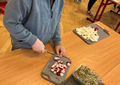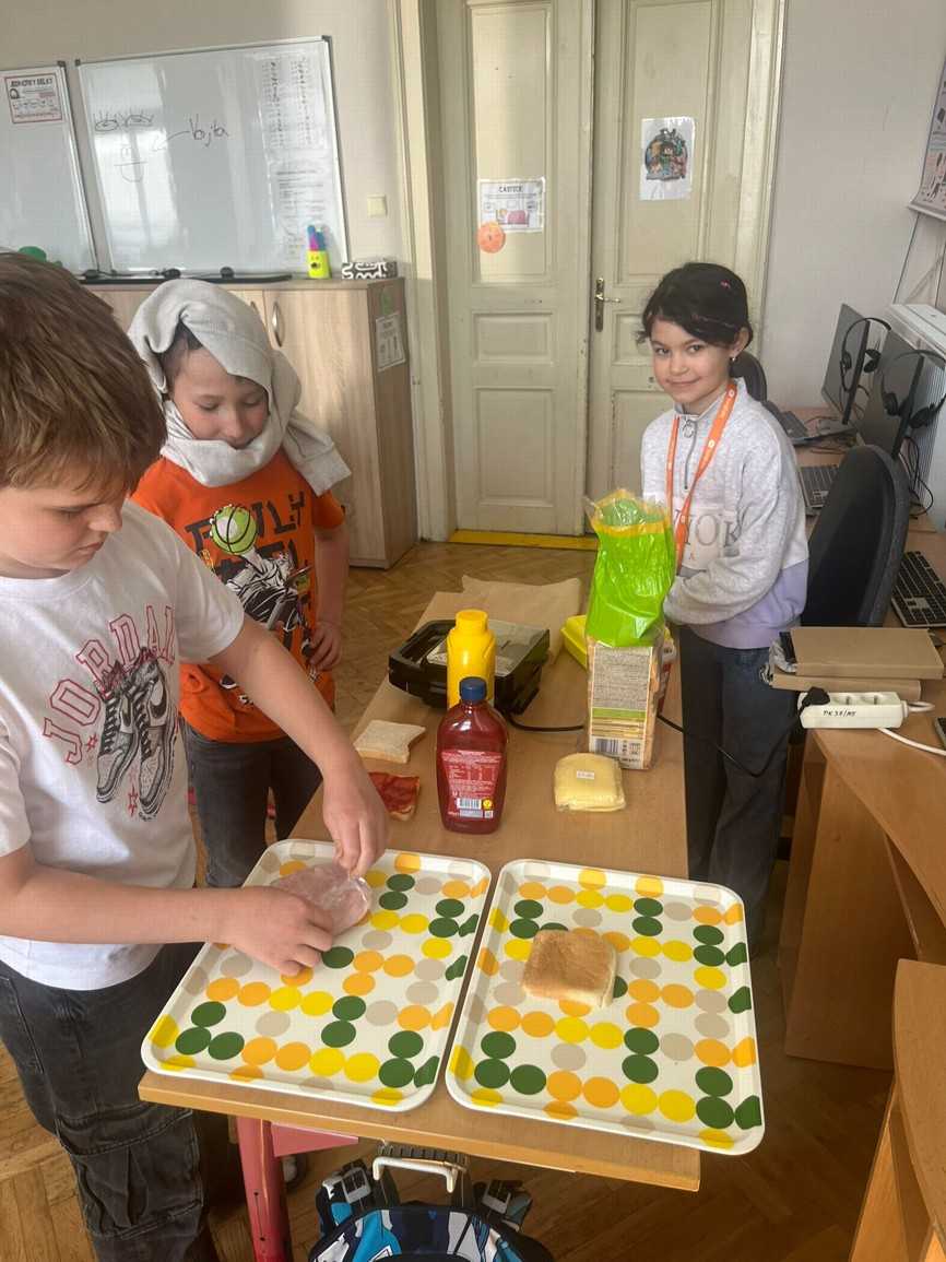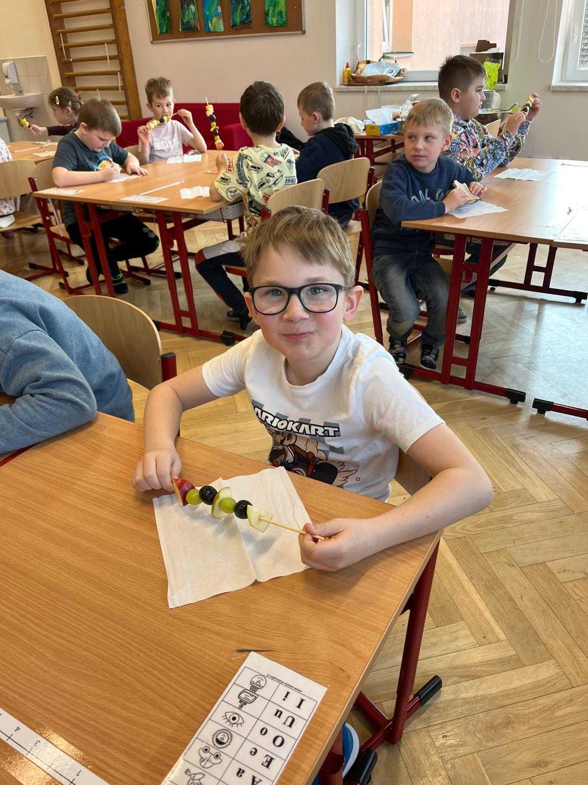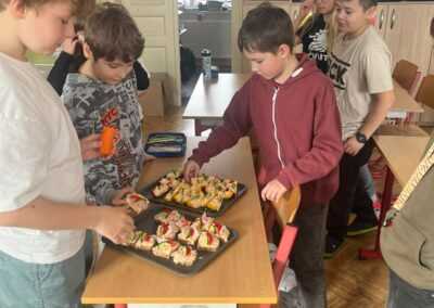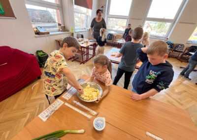 V jednotlivých třídách tomu bylo nejinak. Starší děti si nakoupily suroviny a připravily pro své spolužáky zdravou svačinku. Mladší děti hlavně zdokonalovaly krájecí, loupací a aranžovací dovednosti a připravily si švédské stoly, kde si každý mohl vybrat, co mu chutná.