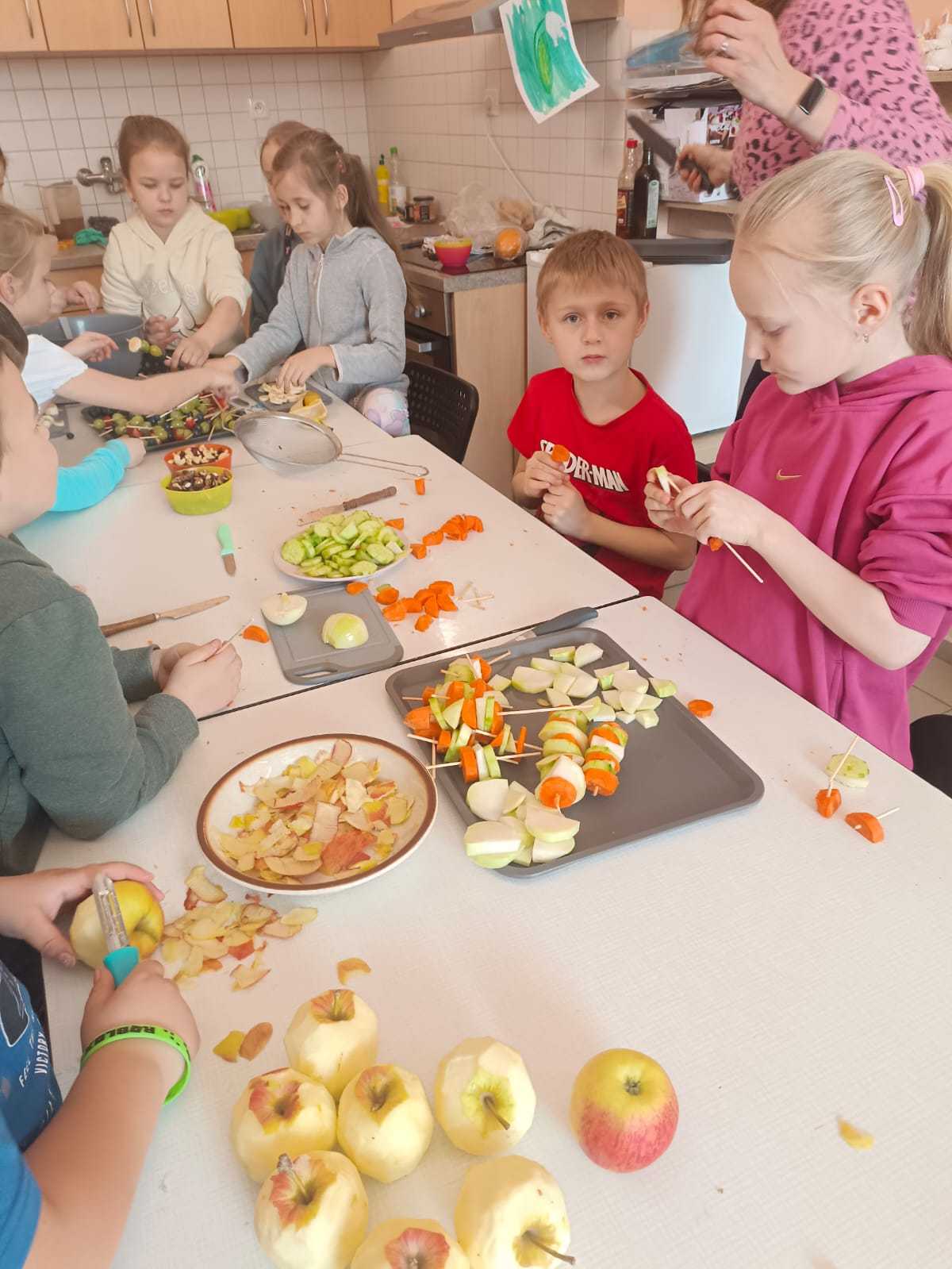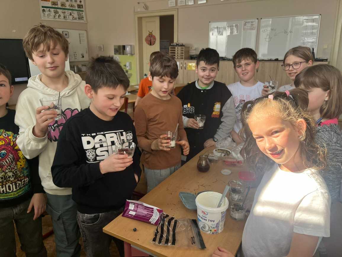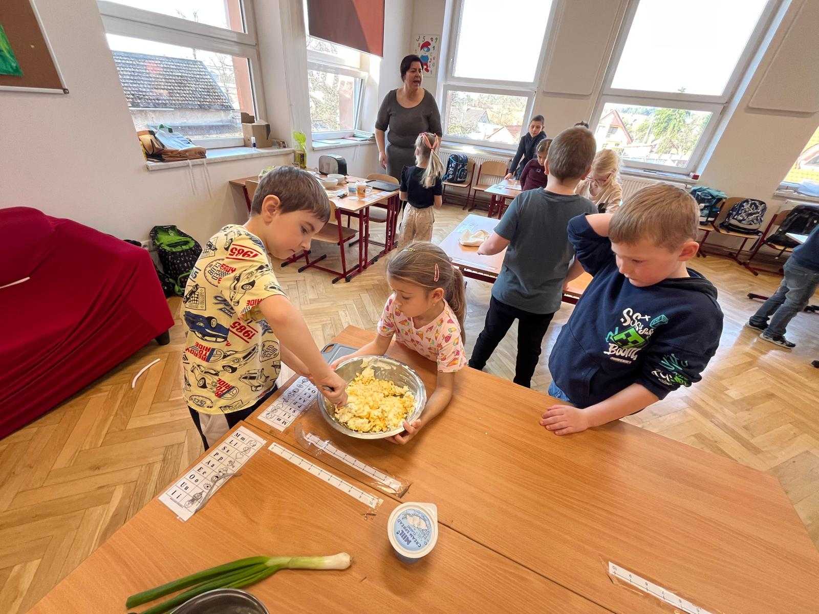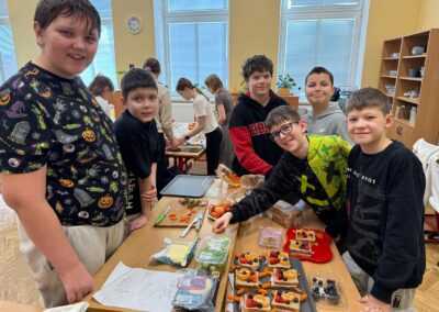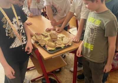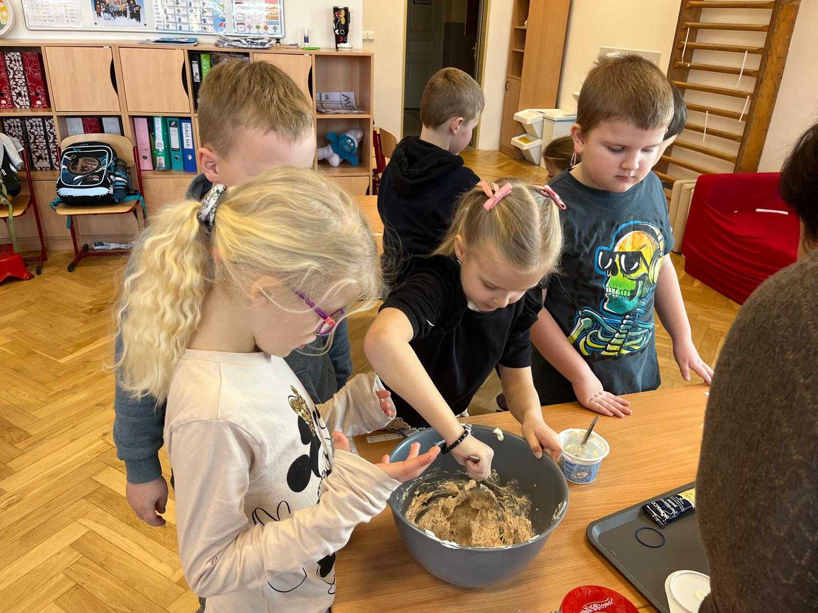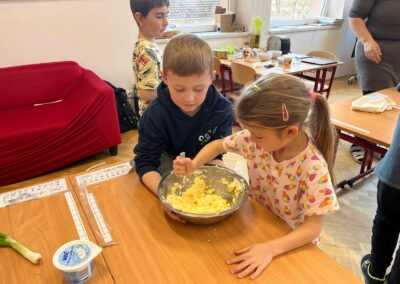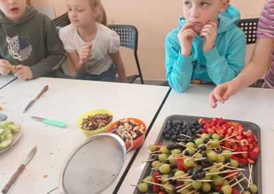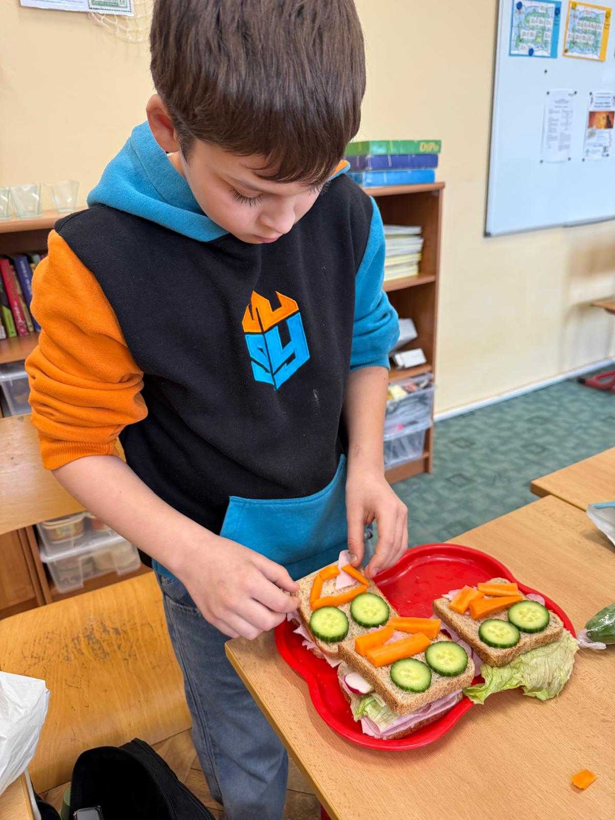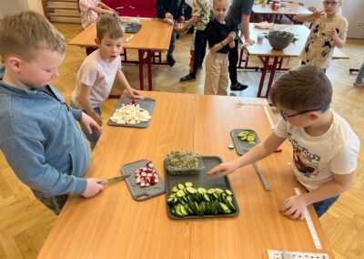 V jednotlivých třídách tomu bylo nejinak. Starší děti si nakoupily suroviny a připravily pro své spolužáky zdravou svačinku. Mladší děti hlavně zdokonalovaly krájecí, loupací a aranžovací dovednosti a připravily si švédské stoly, kde si každý mohl vybrat, co mu chutná.