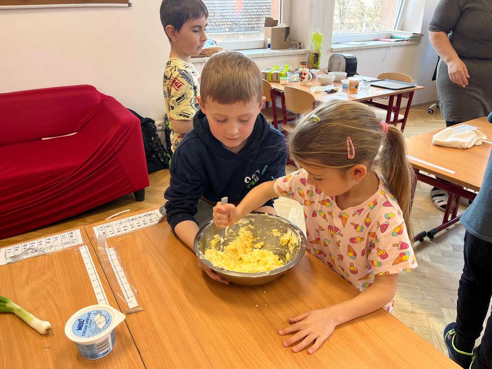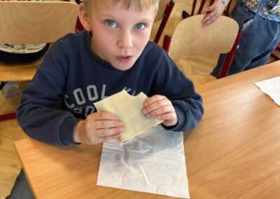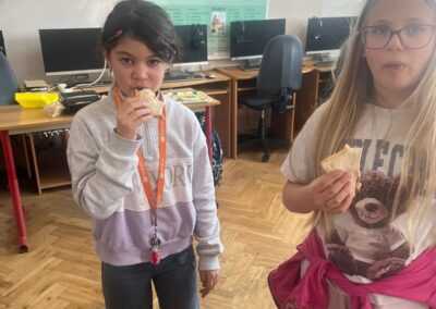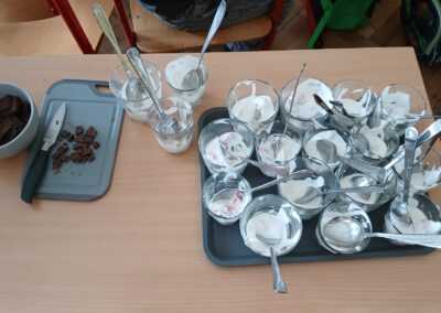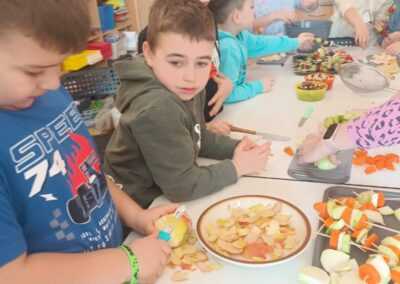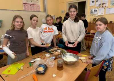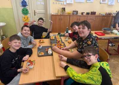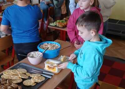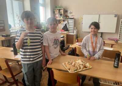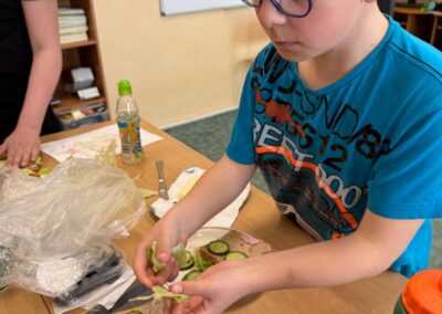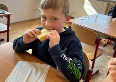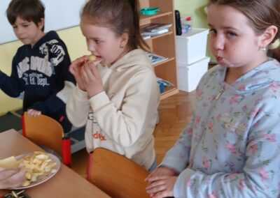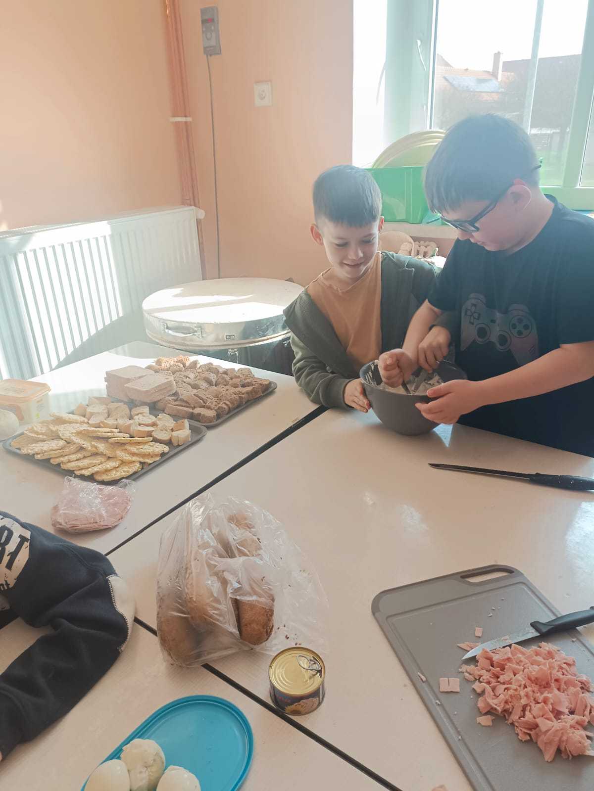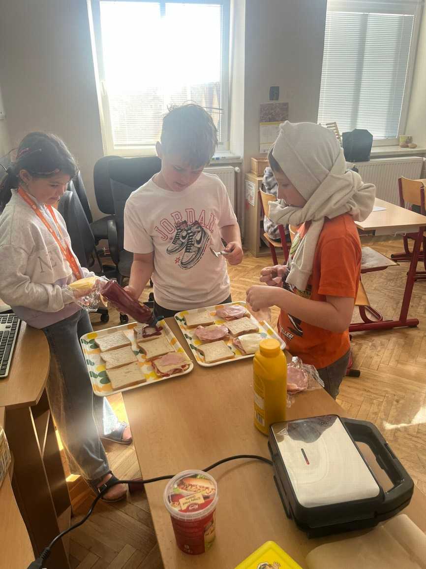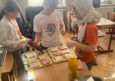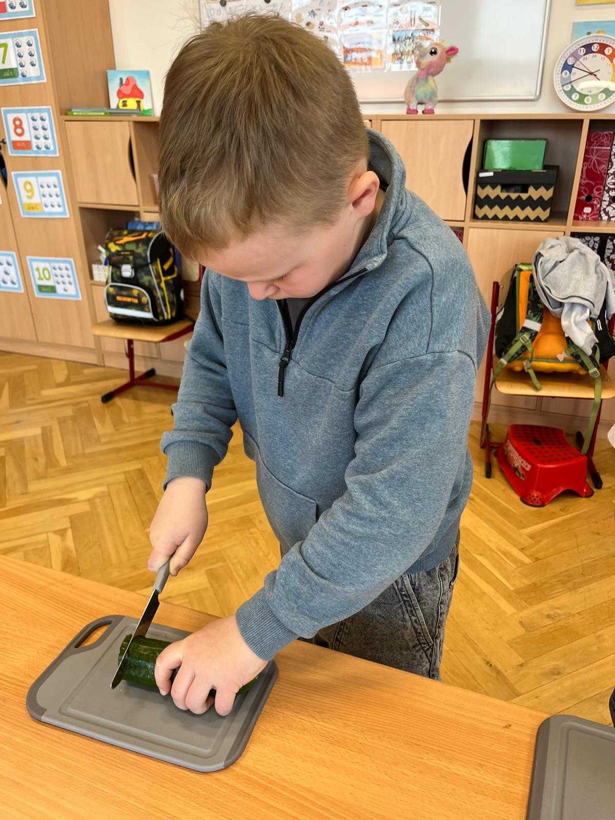 V jednotlivých třídách tomu bylo nejinak. Starší děti si nakoupily suroviny a připravily pro své spolužáky zdravou svačinku. Mladší děti hlavně zdokonalovaly krájecí, loupací a aranžovací dovednosti a připravily si švédské stoly, kde si každý mohl vybrat, co mu chutná.