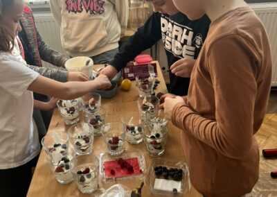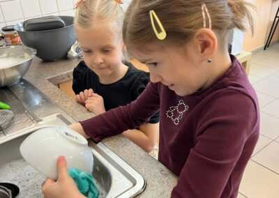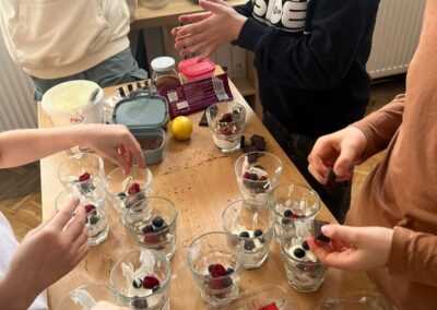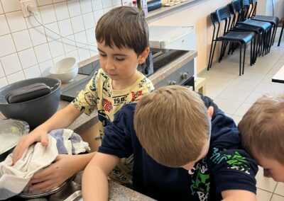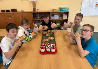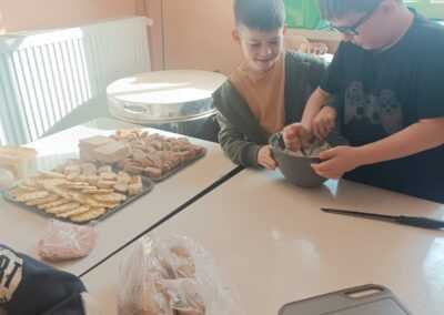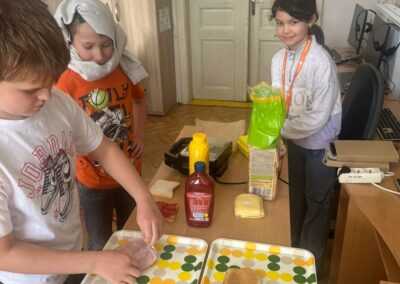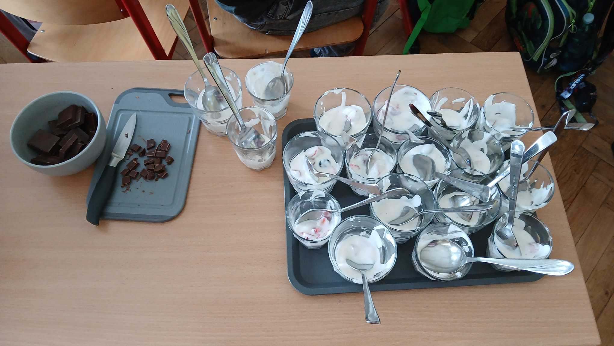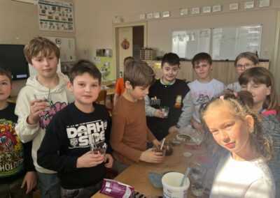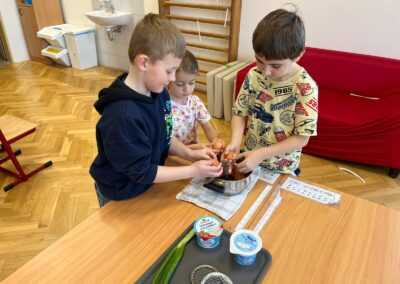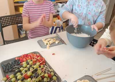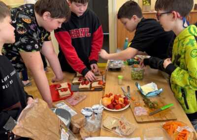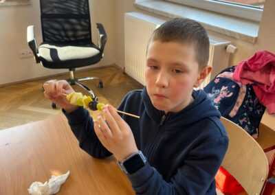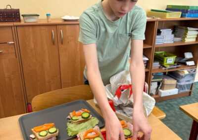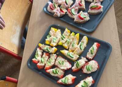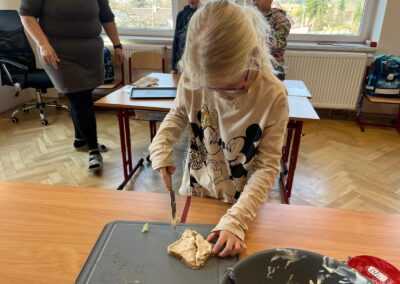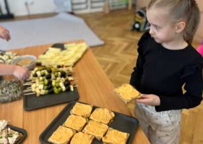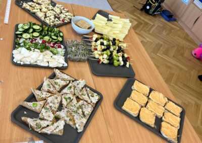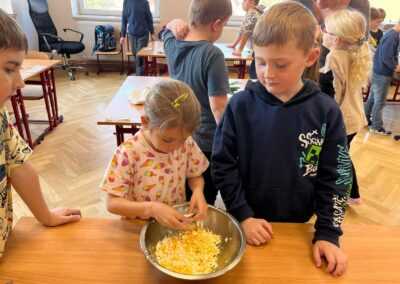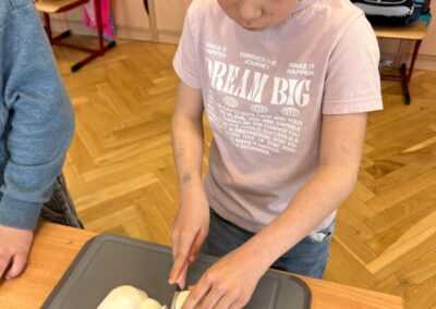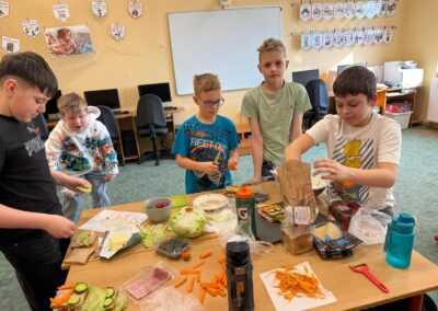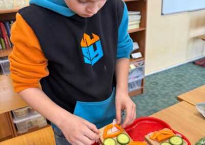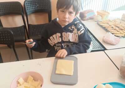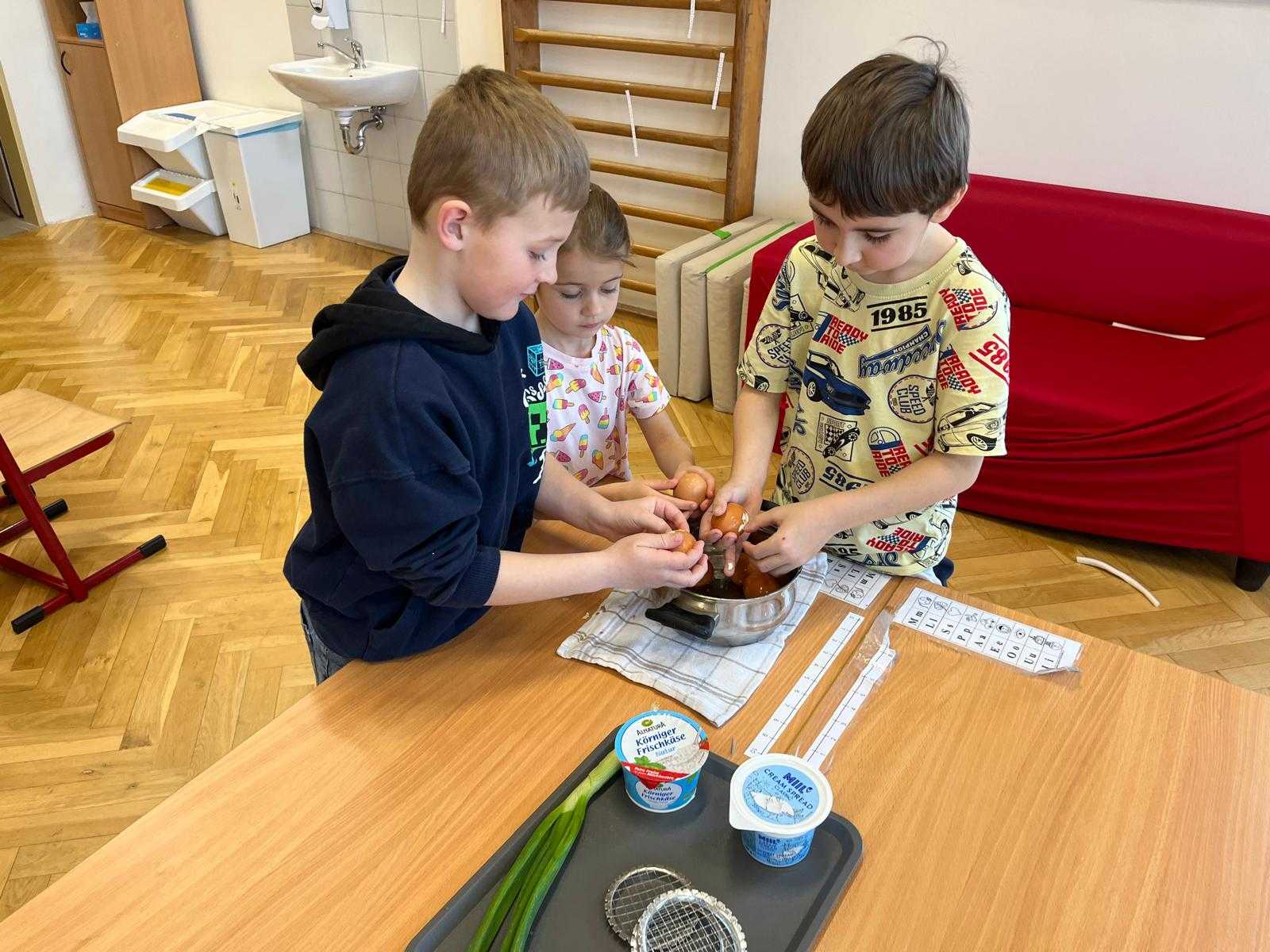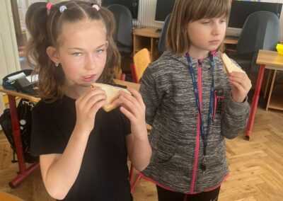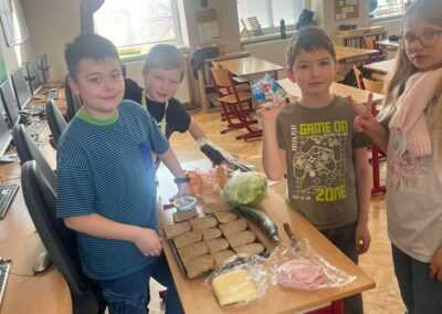 V jednotlivých třídách tomu bylo nejinak. Starší děti si nakoupily suroviny a připravily pro své spolužáky zdravou svačinku. Mladší děti hlavně zdokonalovaly krájecí, loupací a aranžovací dovednosti a připravily si švédské stoly, kde si každý mohl vybrat, co mu chutná.